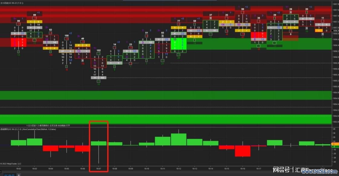 这里不错借助一些用具,来识别阻力位隔邻的多空力量对比,比如EBC的订单流用具,基于10档盘口的Tick数据,及时跟踪商场上每一笔订单,并造成脚迹图。