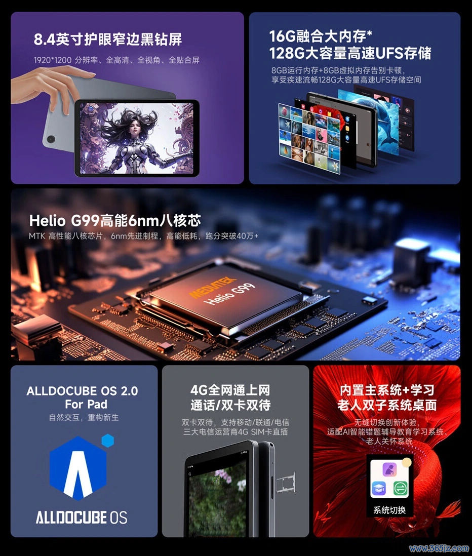 IT之家查询获悉,酷比魔方 2024 版掌玩 mini 平板电脑于本年 1 月开售,配备 8.4 英寸 1920×1200 别离率全贴合屏幕,使用了联发科 Helio G99 贬责器,缓助 8GB + 128GB 内存组合,首发价钱 719 元。