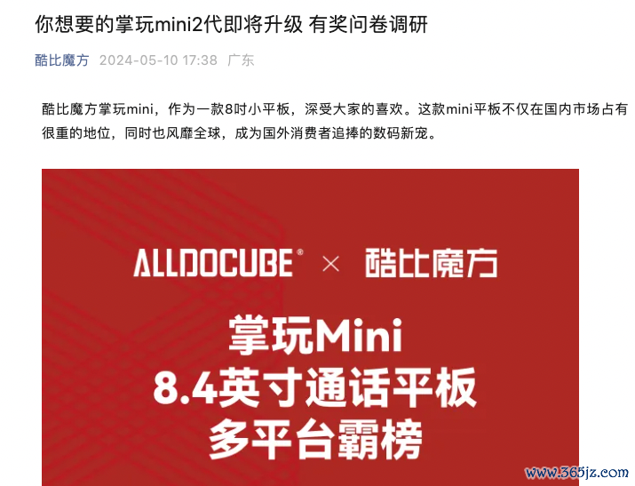 发布日期:2024-06-19 11:12 点击次数:206IT之家 5 月 10 日音尘,酷比魔方官宣开云体育,旗下掌玩 mini 平板 2 代行将到来,现开启问卷调研,用户可针对建立校阅方面建议主张。