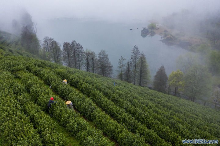 2024年4月7日,在位于浙江省金华市金华山鹿田村的婺州举岩茶基地,茶农在采摘举岩茶鲜叶,发展特质茶产业是推动当地匹夫共富的枢纽阶梯之一(无东谈主机相片)。新华社记者 徐昱 摄