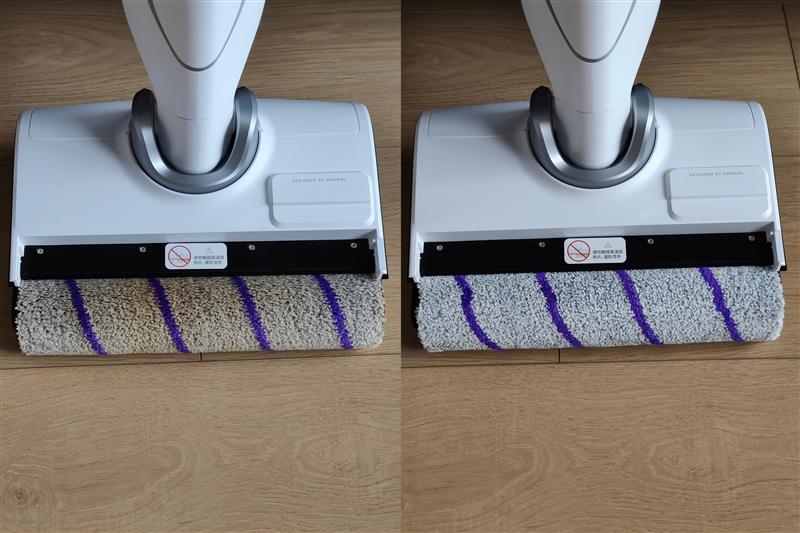 在清洁经由中,即使吸取了多数的头发,这些头发也并未缠绕在滚筒刷上,这阐扬了洗地机的防缠绕功能相当有用。