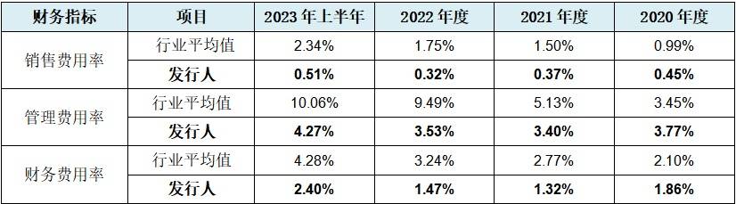 刊行东说念主败露的期间用度率与行业平均值的比较情况,如下表所示: