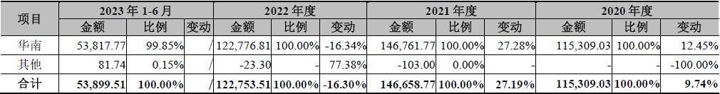 要是刊行东说念主简直100%的业务来自于华南地区,可能还不算不太妙,可能更不好的是据刊行东说念主深交所问询函流露:“论说期内,刊行东说念主营业收入均王人集在华南地区,其中深圳地区收入占比在70%以上。”