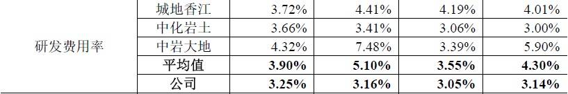 从上表可见,除了2020年度研发用度率3.14%略高于中化岩土3.00%,刊行东说念主系可比公司中最低水平。