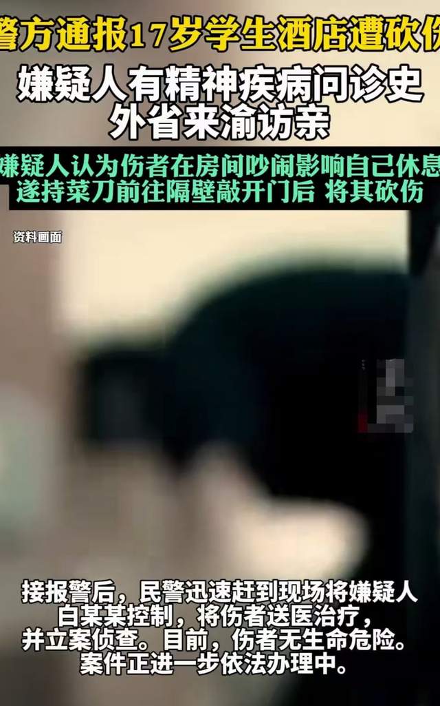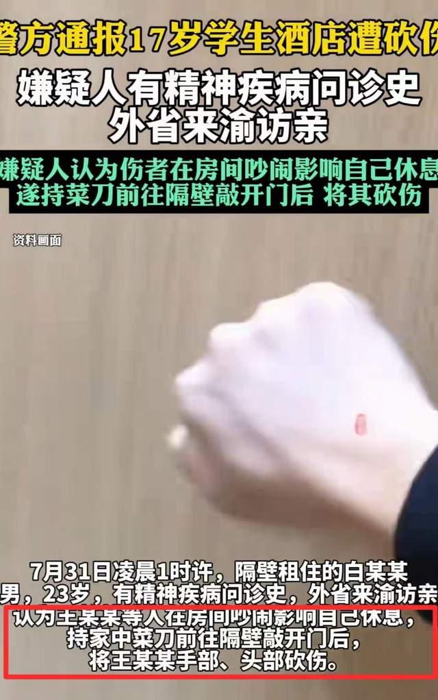 据访谒,嫌疑东谈主名为白某某,本年23岁,是外地东谈主,这次来重庆走亲戚,他照旧采纳过精神调节,但半途废弃。