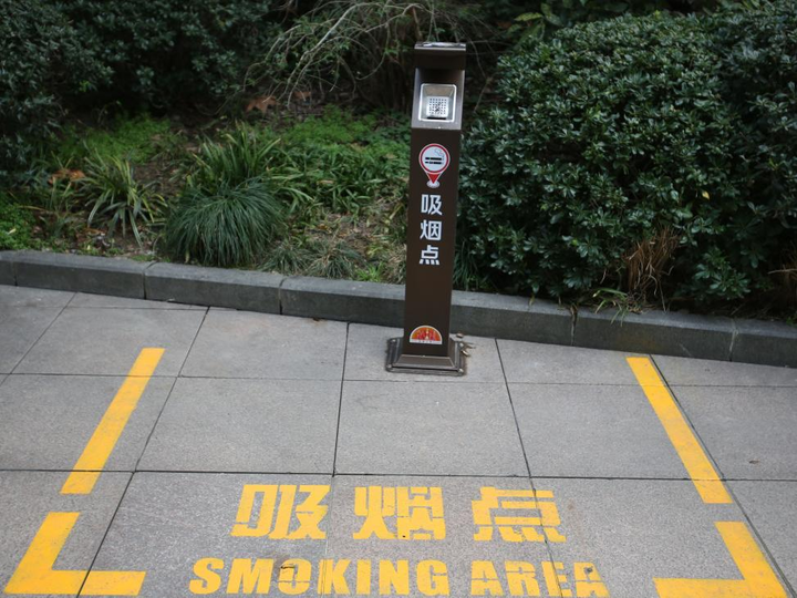 在上海南京路走路街隔邻拍摄的室外抽烟点。新华社记者 辛梦晨 摄