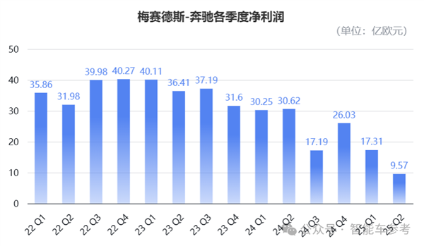 以“亿欧元”为单元算计,这是飞驰5年来净利润初次跌破两位数,依然比不上比亚迪一季度(94亿元)赚得多了。