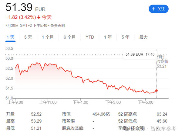 股价整夜跌超3%,市值跌破500亿欧元,挥发了苟简200亿东说念主民币——