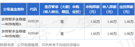 发布日期:2025-11-17 05:26 点击次数:61本站音尘,11月14日浙商基金科罚有限公司发布《浙商智多金隆重一年捏有期羼杂型证券投资基金放置大额申购(含依期定额投资)及转机转入业务的公告》。公告中教导,为保护基金份额捏有东说念主利益,自2025年11月17日起浙商智多金隆重一年捏有期羼杂型证券投资基金放置大额申购(含依期定额投资)及转机转入业务,申购、转机转入上限金额为1.0万元,下属分级基金调养明细如下:
